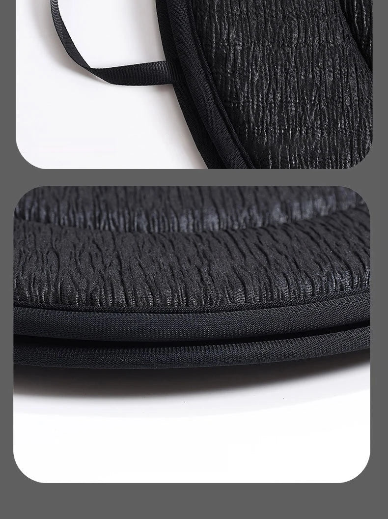 The outer layer is crafted from pleated fabric that feels smooth and comfortable against clothing. The textured surface helps keep the cushion in place while still allowing the seat to rotate freely. As a pleated fabric seat cushion, it provides a breathable surface that may help prevent heat buildup during longer periods of sitting, making it suitable for everyday use in both vehicles and home seating.
