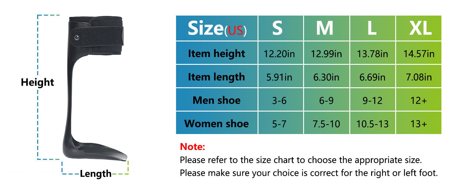 Available in multiple sizes, this foot drop orthosis is designed to accommodate different foot shapes and sizes. Separate options for left and right feet allow for a more precise fit. Selecting the correct size ensures optimal support, comfort, and effectiveness during walking and rehabilitation.