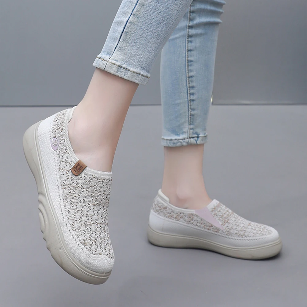 Women Anti Slip Thick Sole Walking Shoes Breathable Casual Travel Shoes Round Toe Lightweight Walking Loafers for Outdoor Travel