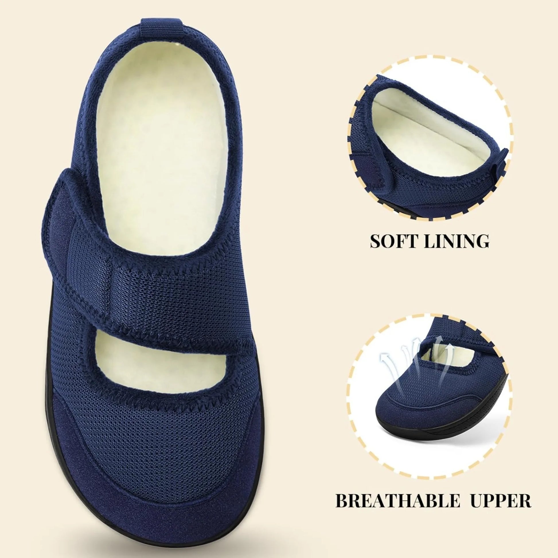Wide Slippers: The wide toe box design of these women's walking shoes provides ample room for the toes to flex and move freely, and offers maximum comfort for those with edema or swollen feet